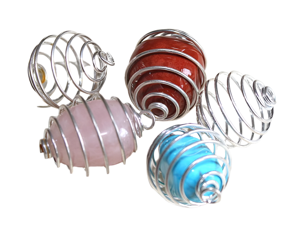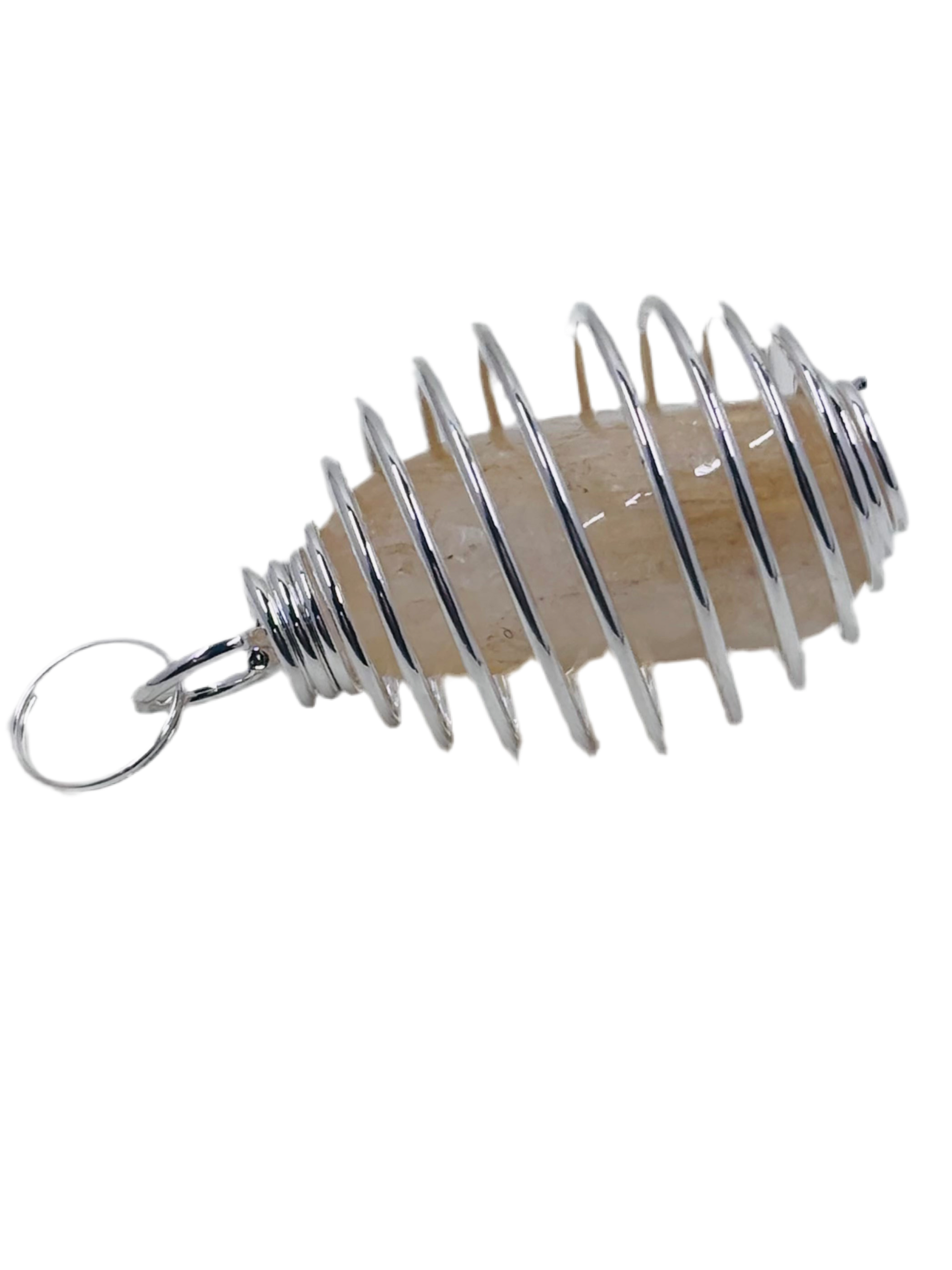 Our silver-plated crystal keepers are perfect for keeping your crystal after your candle is finished. The crystal keeper is a round spiral cage measuring approx. 3.5cm x 2.5cm.